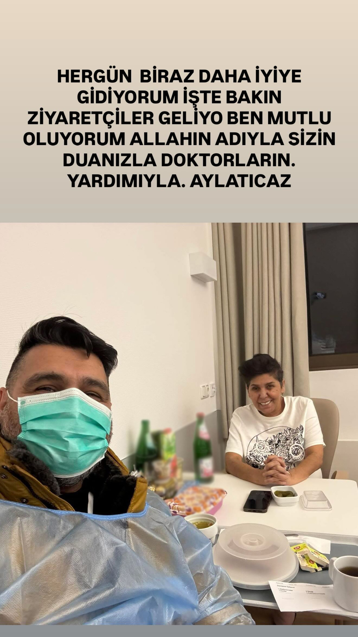 Yalnız şunu belirtmek istiyorum buradan, ben çok ağır ilaçlar, antibiyotikler alıyorum ve onlar bana çok sürekli uyku yapıyor. O yüzden herkese tek tek cevap veremiyorum. Anlayışınıza sığınıyorum. O yüzden buradan bu videoyu yapmak istedim. Her şey için çok sağ olun. Allah sizi sizi başımdan eksik etmesin inşallah. Allah'a emanet" açıklamasını yapmıştı.