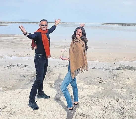 Tuz Gölü'ne giden ve tuz odalarını ziyaret eden çift, bu doğal yapıların hem tarihine hem de şifa özelliklerine hayran kaldıklarını dile getirdi. Karı-koca bir ara ayaklarını suya sokarak dinlendi.