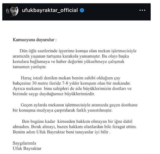 Ufuk Bayraktar yaşananlar sonrası kendi kişisel hesabından bir açıklama yaparak yaşadığı olaya açıklık getirdi.
