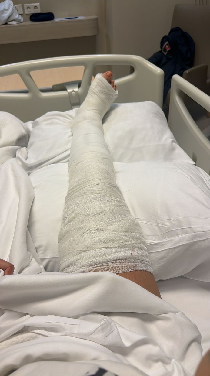 "Selamlar hepinize, bir süredir hastanedeyim, tam bir haftadır. Yarın eve çıkacağız inşallah. Bugün 8. günümüz... Çok zor birkaç gün geçirdim. Ağrım çok, tarifsiz... Bu normal bir kırık değil öncelikle onu söyleyebilirim. Benim kırığım ön kaval kemiğimden yani ön bacağımdan. Oraya platin takıldı."