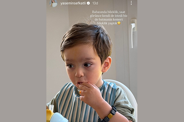 Yasemin Şefkatli sosyal medya hesabından oğullarının, İdo Tatlıses'in aksesuarlarına nasıl özendiğini takipçileriyle paylaşmıştı. Babasının kolundaki saat ve bilekliği fark eden minik Tatlıses, kendisi için de benzer bir şey isteyince çözüm oldukça yaratıcı ve sevimli olmuştu.