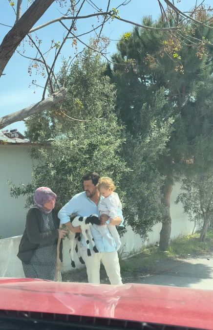 Kısa süreli bir çekingenliğin ardından İlker Aksum'un kuzulardan birini kucağına almasıyla heyecanı artan minik Lila, babasının kucağındaki kuzuyu öperek hayvan sevgisini en saf haliyle sergiledi.