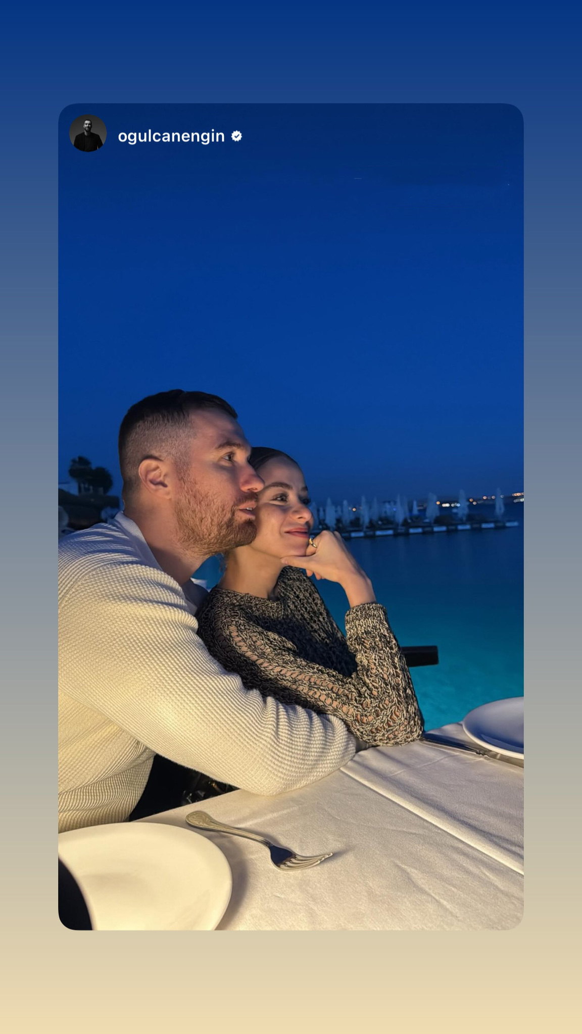 Oğulcan Engin, sevgilisi İlayda Alişan'la çektiği yeni yıl pozunu instagram'da 'kalp' emojisi atarak paylaşmıştı. Güzel oyuncu çok geçmeden aynı kareyi sosyal medya hesabında yayınlamıştı.