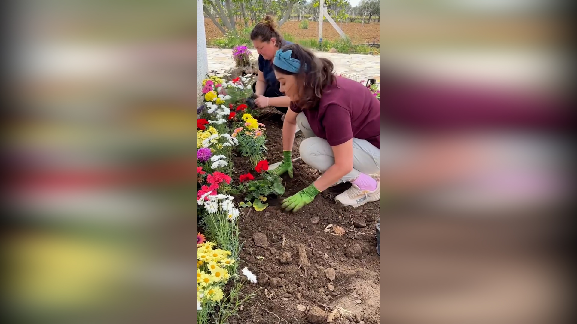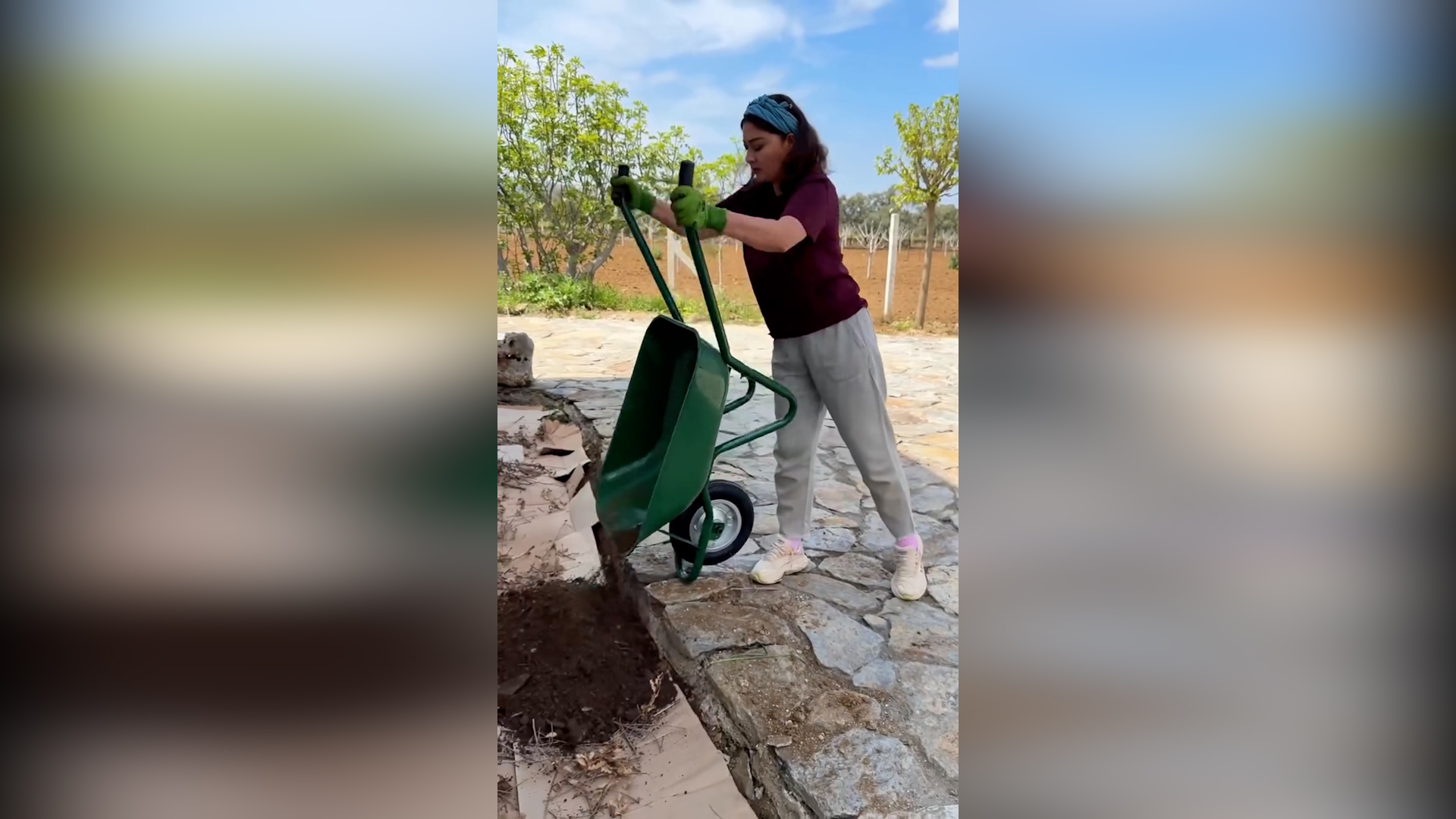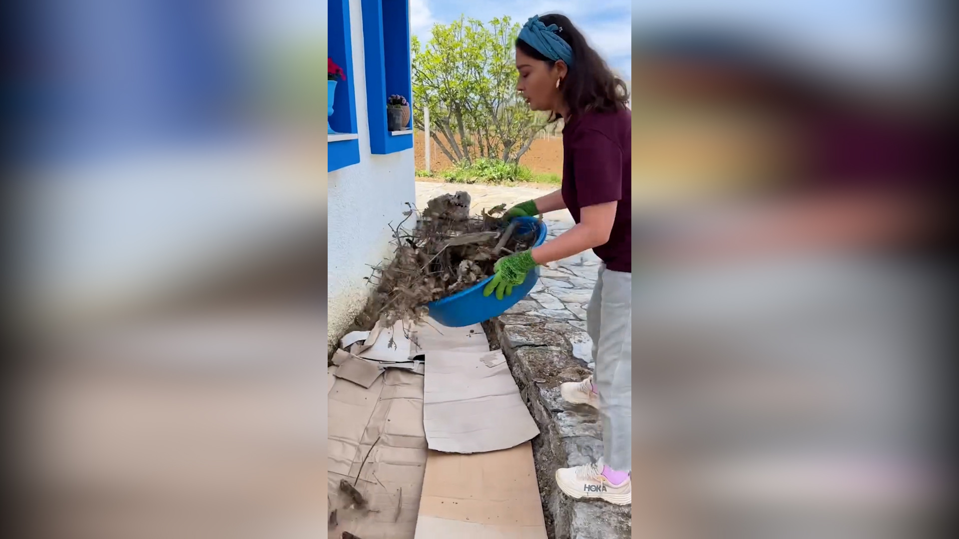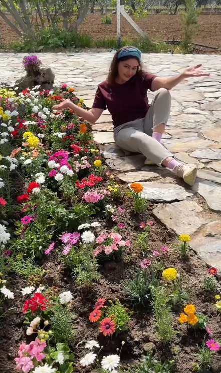 Paylaştığı videoda oldukça neşeli olduğu gözlenen Yeşilçay, bahçesini adeta bir nakış gibi işleyerek adım adım güzelleştirdi.