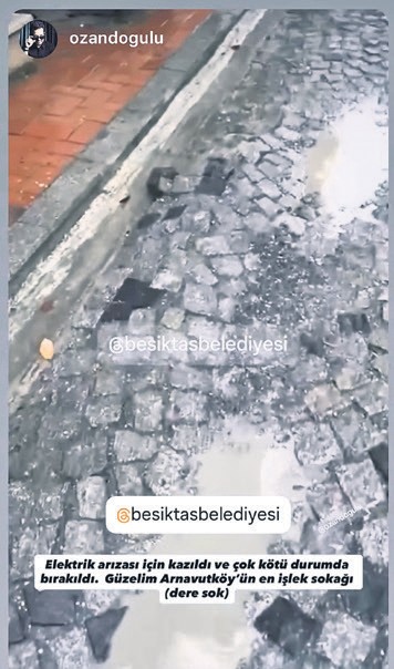 Sanatçının paylaşımı kısa sürede sosyal medyada ilgi görürken, bölge sakinleri de benzer şikâyetlerini dile getirdi. Özellikle Arnavutköy gibi yoğun yaya trafiğinin olduğu bir bölgede yolun bu şekilde bırakılmasının hem görüntü kirliliği yarattığı hem de güvenlik açısından risk oluşturduğu yorumları yapıldı.