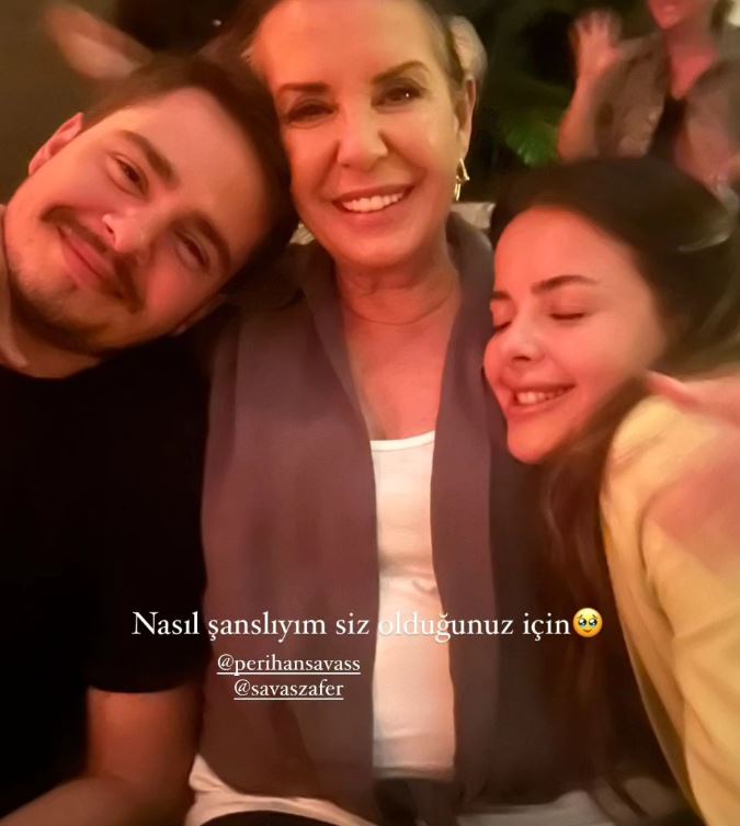 Genç çift son olarak anneleri Perihan Savaş'ı ödül töreninde yalnız bırakmadı. Gecede oğlu, gelini ve büyük kızı Zübeyde Melek Akkaş'tan olan torunu ile boy gösteren Perihan Savaş asaleti ile övgüleri topladı.