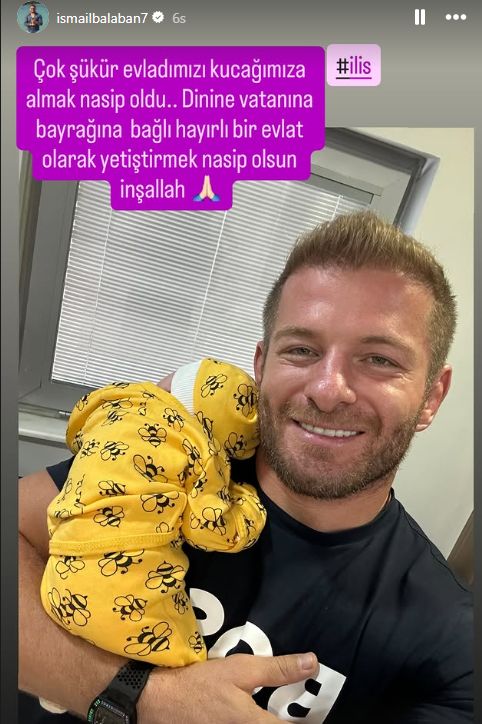 Balaban paylaşımında, "Çok şükür evladımızı kucağımıza almak nasip oldu. Dinine, vatanına, bayrağına bağlı hayırlı bir evlat olarak yetiştirmek nasip olsun inşallah' notunu ekledi.