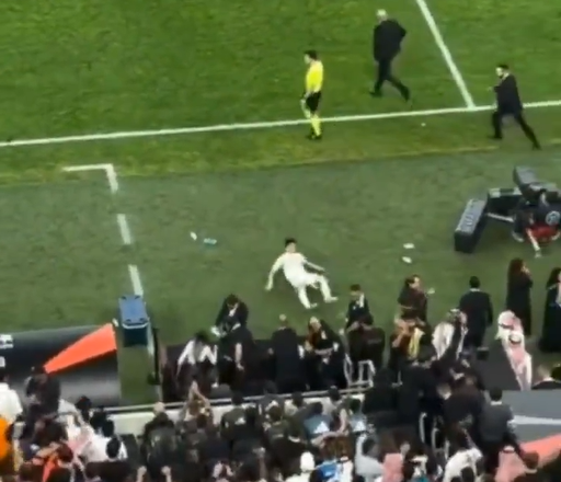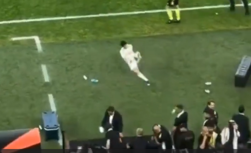Bitiş düdüğünü gelmesiyle birlikte soyunma odasına yönelen Arda Güler, saha kenarındaki şişeye tekme atmak istedi.