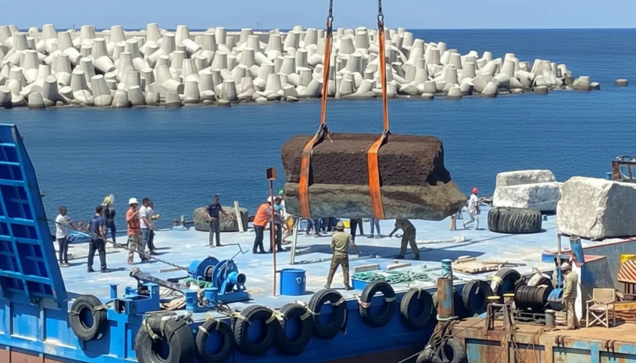 Her biri tam 80 bin kilo ağırlığında olan 22 devasa blok, özel teknolojilerle suyun altından tek tek tespit edildi.
