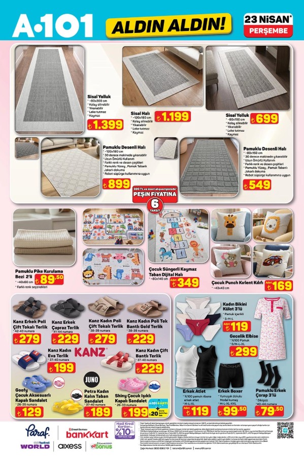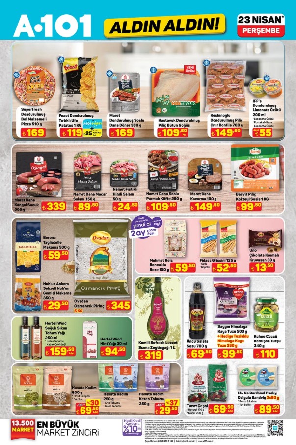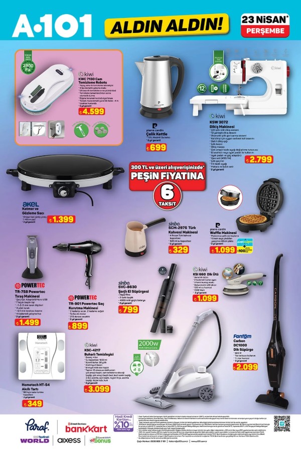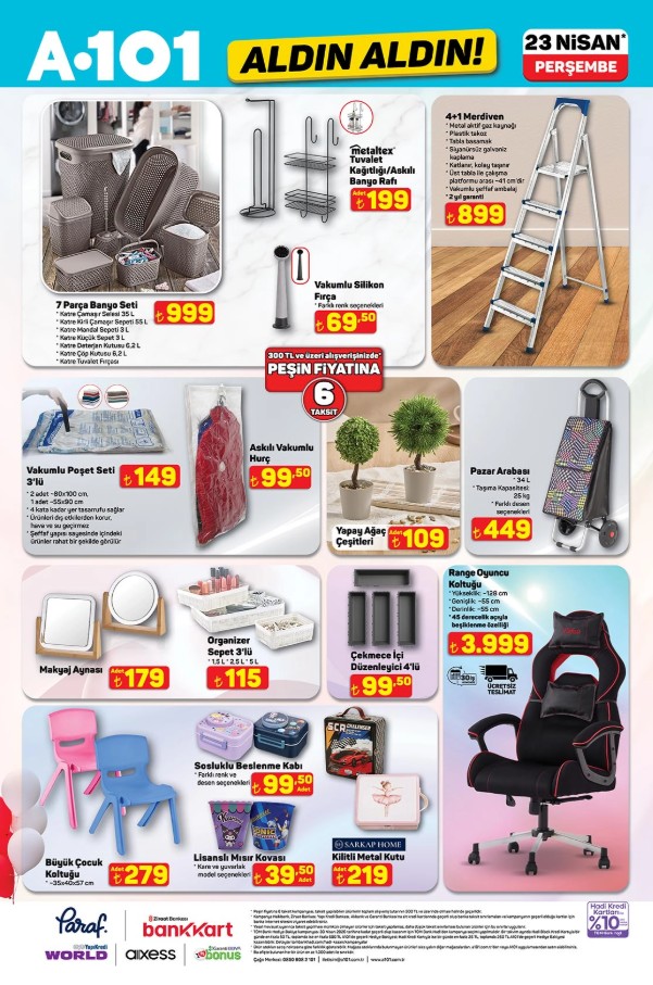 23 Nisan A101 aktüel kataloğunda yer alan ürünler yakından inceleniyor. Ürünlerin görselleri ve özellikleri aktüel katalogda ayrıntılı olarak yer alırken aynı zamanda güncel fiyatları da açıklanıyor. Alışverişseverlerin yakından takip ettiği aktüel katalog ile alışveriş listeleri hazırlanıyor.
