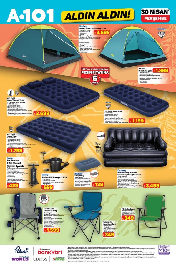 A101'den kaçırılmayacak fırsatlar bu perşembe satışa çıkıyor. Her ihtiyaca uygun ürünlerin yer aldığı katalogda IPL Lazer epilasyon cihazından boyun ve sırt masaj aletine, kamp çadırından şişme yatağa birçok ürün bu hafta uygun fiyatıyla raflarda alıcısıyla buluşacak. İşte, yeni haftanın A101 aktüel ürünler kataloğu;
