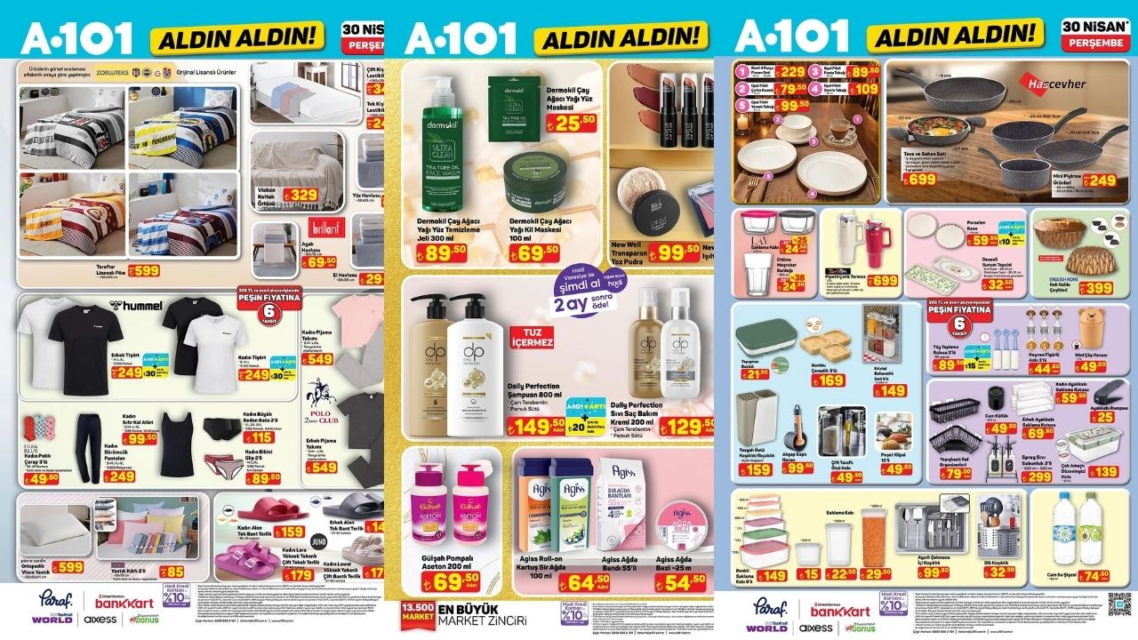 A101, 30 Nisan özel kampanyasıyla aktüel ürün listesini duyurdu. Yeni hafta fırsatlarında birçok farklı kategoride indirimli ürünler öne çıkarken, geniş ürün yelpazesi dikkat çekiyor. Kampanyada yer alan ürün seçenekleri ve fiyat detayları, alışverişini planlı yapmak isteyenler tarafından yakından takip ediliyor.
