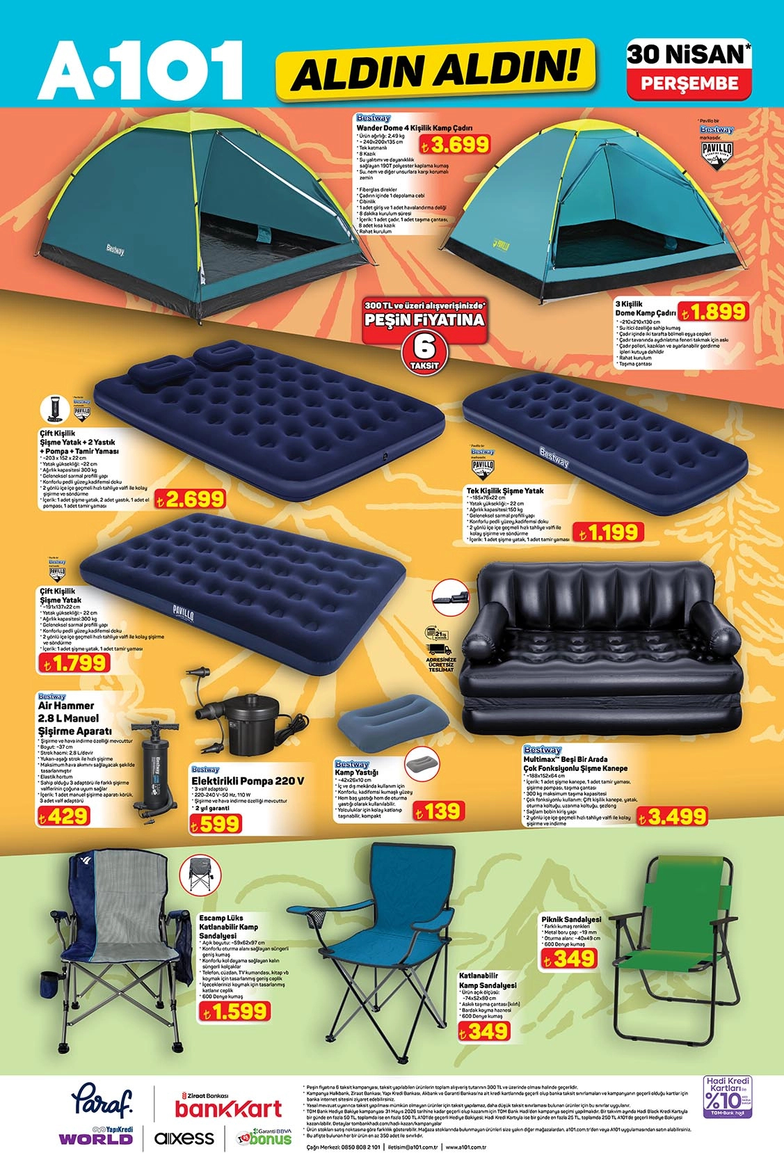 A101 aktüel yeni hafta kampanyası 30 Nisan itibarıyla mağazalarda yerini alıyor. Bu haftanın kataloğunda öne çıkan indirimli seçenekler, alışveriş yapmak isteyenlerin ilgisini çekiyor. Kampanya kapsamında satışa sunulacak ürünler ve fiyatlar netleşirken, mağazalarda bulunacak ürün çeşitliliği de belli oldu. Bu haftanın dikkat çeken ürünleri arasında epilasyon cihazı, çadırlar ve şişme yataklar yer alıyor. İşte yani haftanın A101 aktüel ürünleri