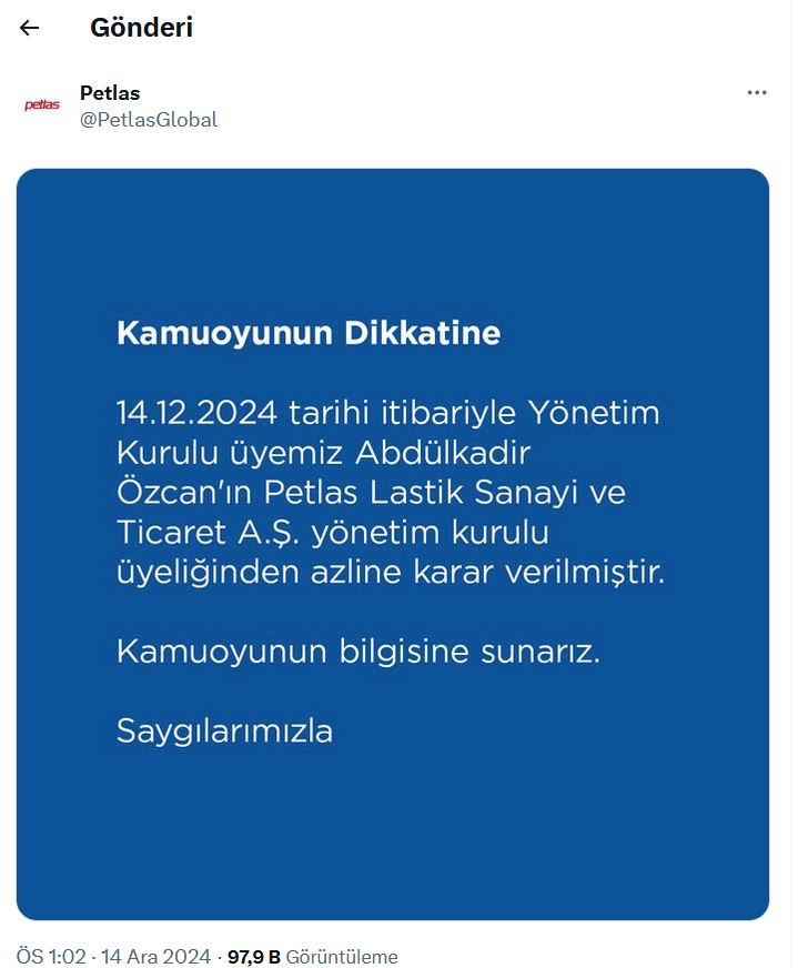 Türk Hava Yolları'nın (THY) Dubai-İstanbul seferini yapan uçakta Petlas Lastik Sanayi Yönetim Kurulu Üyesi Abdulkadir Özcan taşkınlık çıkardı. Business Class'ta oturan Abdulkadir Özcan isimli yolcu, alkolü fazla kaçırınca diğer yolculara rahatsızlık vermeye başladı.