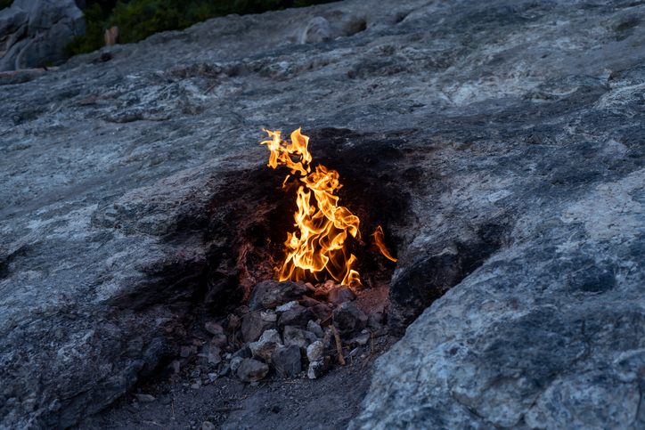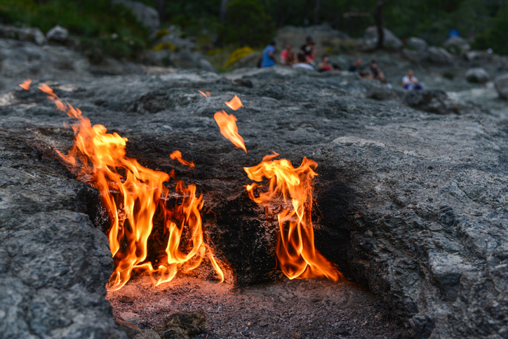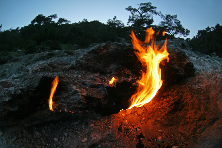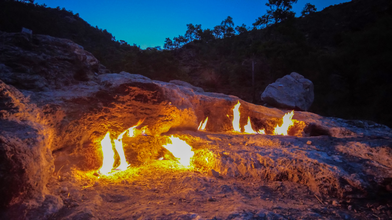Zifiri karanlıkta taşların arasından yükselen turuncu alevler, size kendinizi bir masalın içindeymiş gibi hissettirecek.