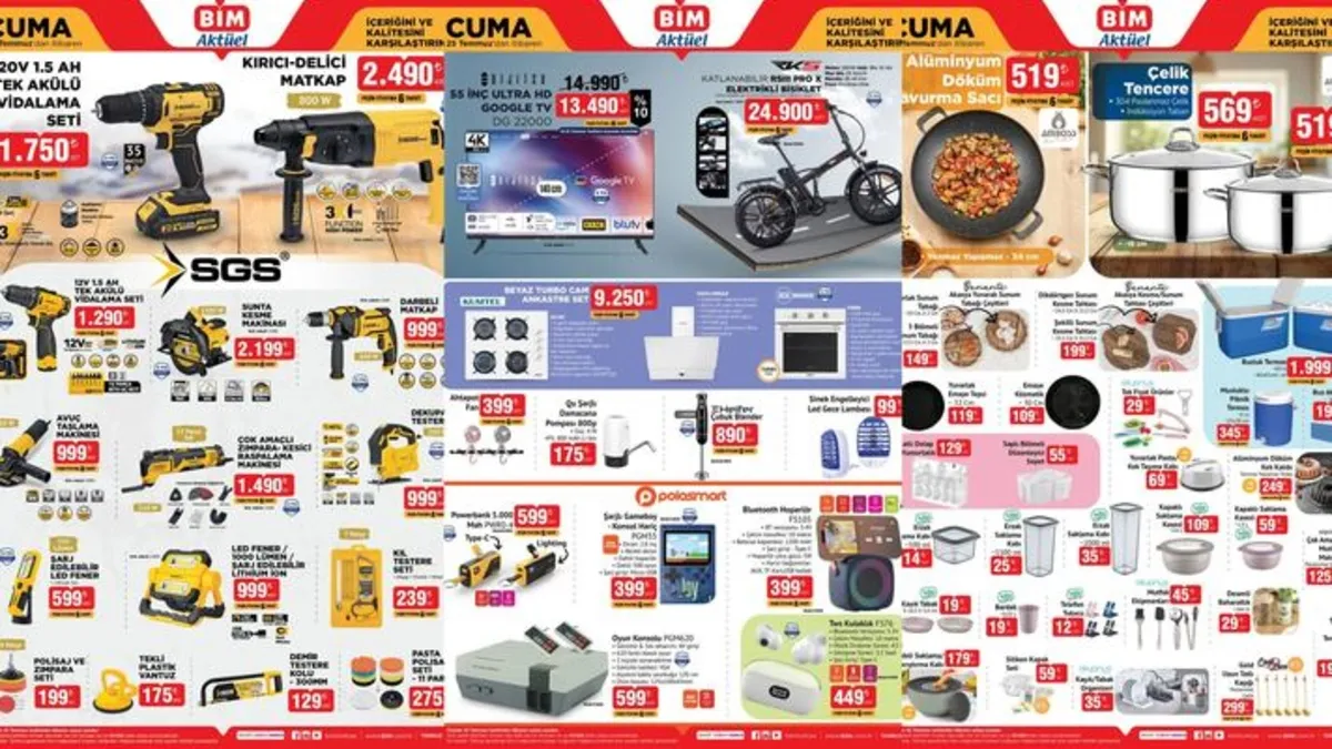 BİM'den kaçırılmayacak fırsatlar bu Salı ve Cuma günü tüm zincir marketlerde geçerli olacak. Temmuz ayının son indirimlerden faydalanmak isteyen alışverişseverler yeni haftanın broşürünü yakından takip ediyor. Kamp sandalyesi, elektrikli bisiklet, şarjlı matkap ve birçok ürün uygun fiyata alıcısıyla buluşacak. Peki, BİM'de bu hafta neler var, indirimli mi? İşte, 22 Temmuz BİM aktüel ürünler kataloğu!