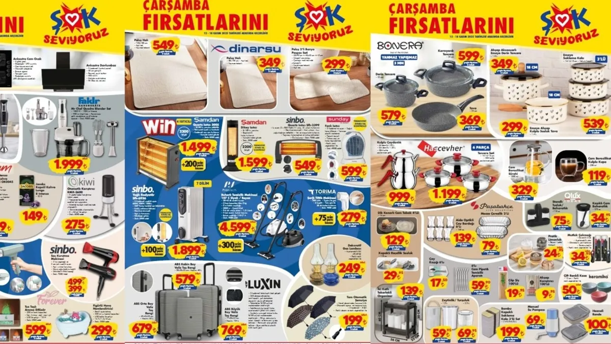 ŞOK haftalık aktüel ürün kataloğu 12-18 Kasım 2025 tarihleri arasında geçerli indirimlerle market raflarında yerini alıyor. Bu hafta; valiz modelleri, halılar, çay makineleri, buharlı temizlik cihazları, bebek bezleri, temizlik ürünleri, dikey süpürge ve tencere çeşitleri gibi birçok ürün cazip fiyatlarla satışta olacak. Peki, bu hafta ŞOK aktüel kataloğunda hangi ürünler yer alıyor? İşte aktüel ürünler ve fiyat listesi...