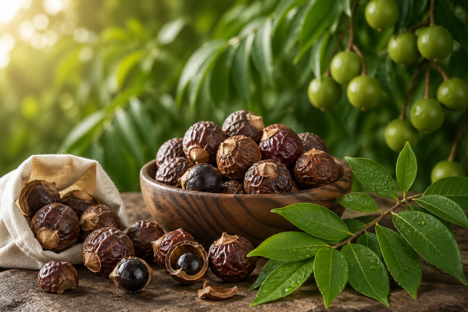 Himalaya Dağları'nın eteklerinde, köylüler tarafından toplanıp güneşte kurutulan bu özel meyve (Sapindus Mukorossi), aslında doğanın bize sunduğu saf bir deterjan.