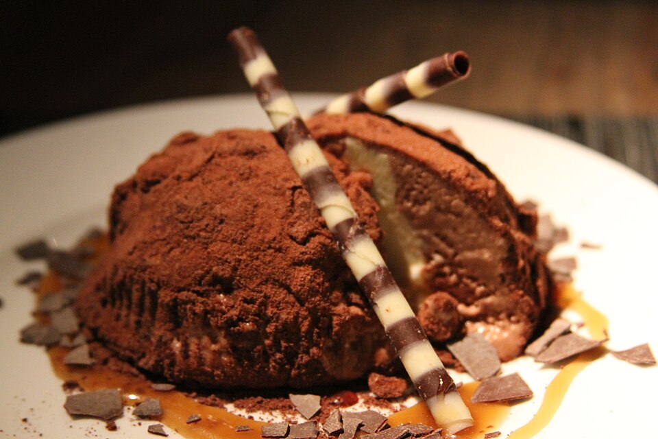 İçinde akışkan çikolata sosu bulunan, dışı kakao kaplı top şeklindeki bu dondurma tam bir görsel şölen.