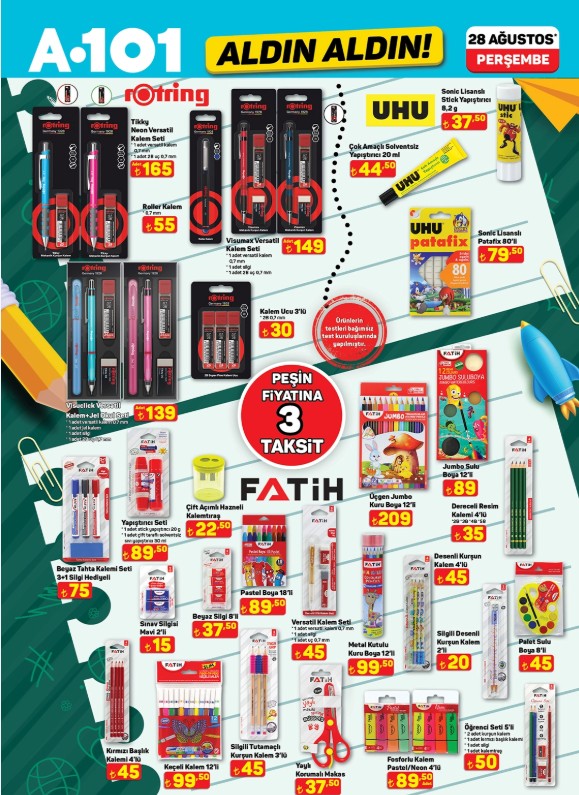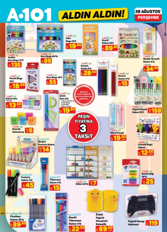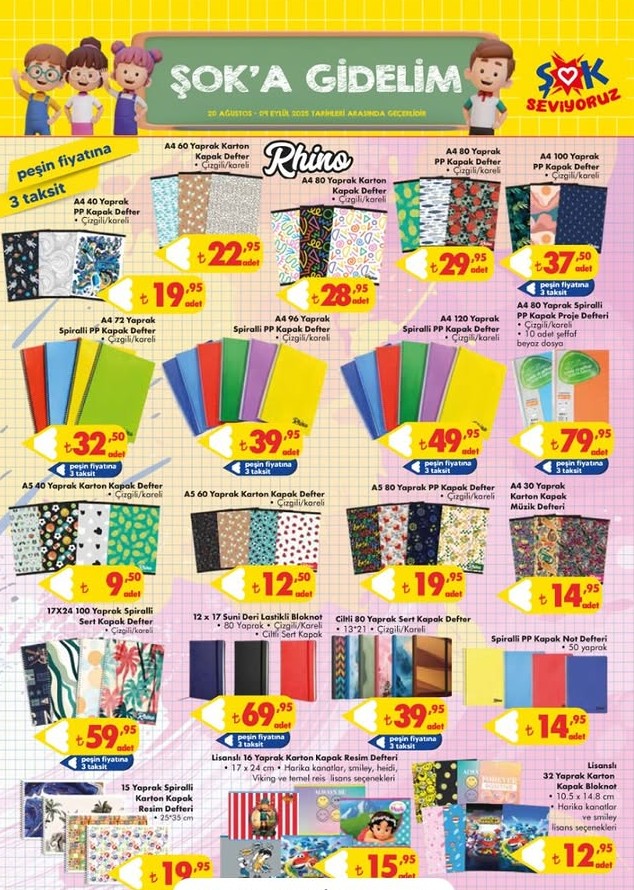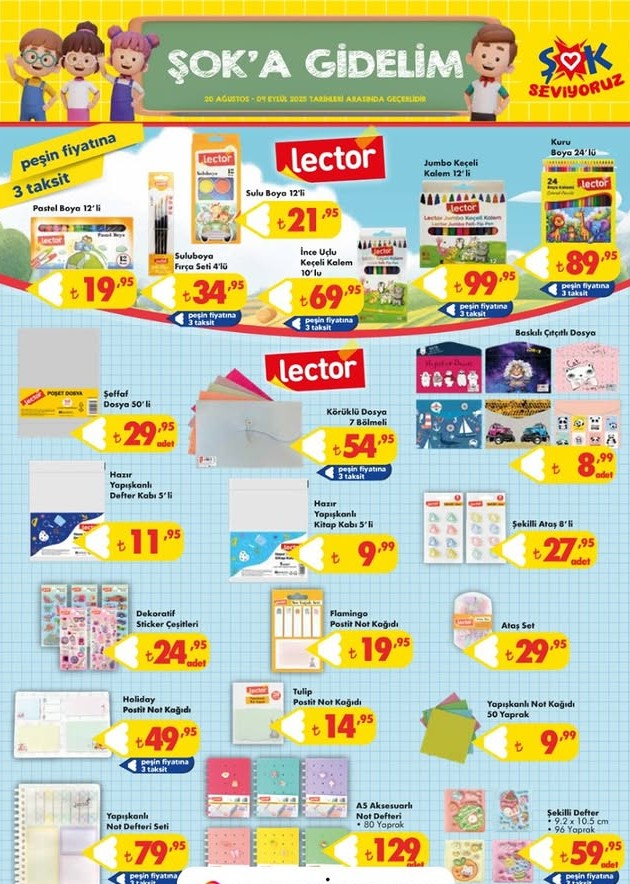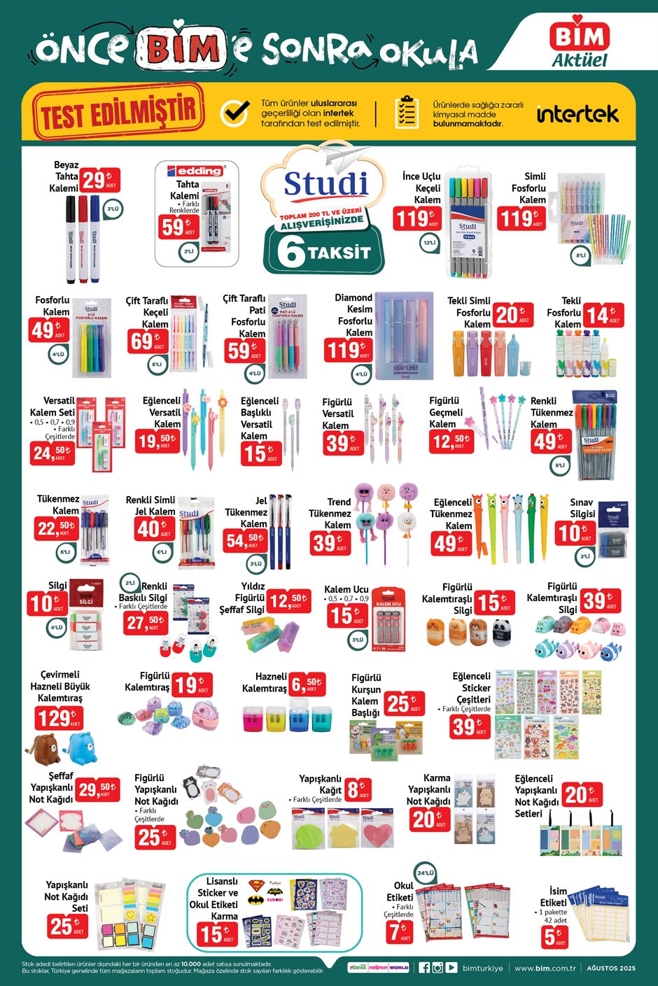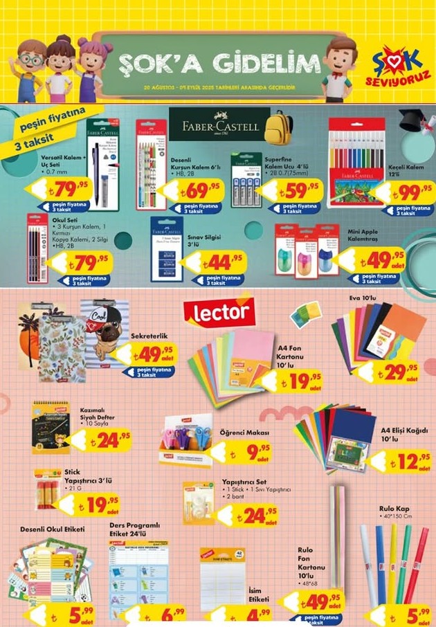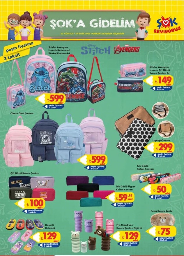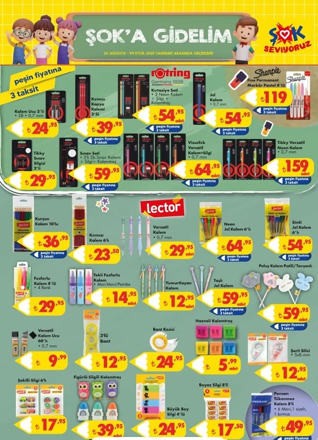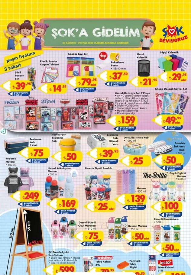 Okulların açılmasına kısa bir süre kala zincir marketler yeni kırtasiye kampanyalarını yayımladı. Defter, kalem, boya setleri, okul çantası ve hesap makinesi gibi öğrencilerin en çok ihtiyaç duyduğu ürünler bu hafta uygun fiyatlarla raflarda yerini aldı. Velilerin bütçesine destek olan indirimlerle alışveriş sepetleri doluyor.İşte A101, BİM ve ŞOK marketlerin güncel kırtasiye katalogları…