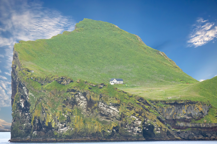 İzlanda'nın güneyinde, ana karadan yaklaşık 8 kilometre uzaklıktaki Ellidaey Adası'nda yer alan bu ev, kilometrelerce boyunca hiçbir insan yerleşiminin olmadığı bir noktada bulunuyor.