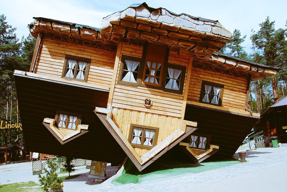 Szymbark kasabasındaki bu evde her şey ters! Mobilyalar tavandan sarkıyor, insanlar çatıda yürüyor. İçeri girenlerin dengesini bozan bu yapı, gerçekliği sorgulatıyor. Dekonstrüktivizm akımının etkilerini taşıyan bu yapı, ilginç mimari yapılar listesinde üst sıralarda yer alıyor.