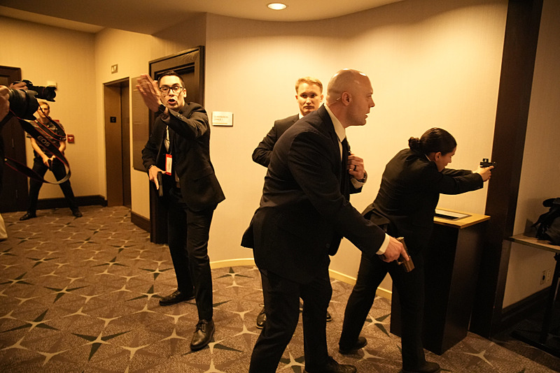 ABD Başkanı Donald Trump ve eşi Melania Trump bağrışmalar ve silah sesleri sonrası Hilton Otel'den apar topar çıkarıldı. Trump'ın kaçarken yere düştüğü görüldü. Katılımcıların masaların altına kaçtığı görüntüler yayımlandı.