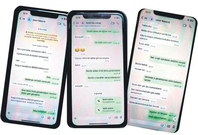 SABAH'ın ulaştığı 9 Ocak 2026 tarihli yazışmalarda Umut Altaş, babasına, "Sen öyle kolay sanıyorsun değil mi? Yaptıklarınızın bir bedeli olacak. Bugün hesabıma 9 bin dolar bekliyorum" mesajını gönderdi.