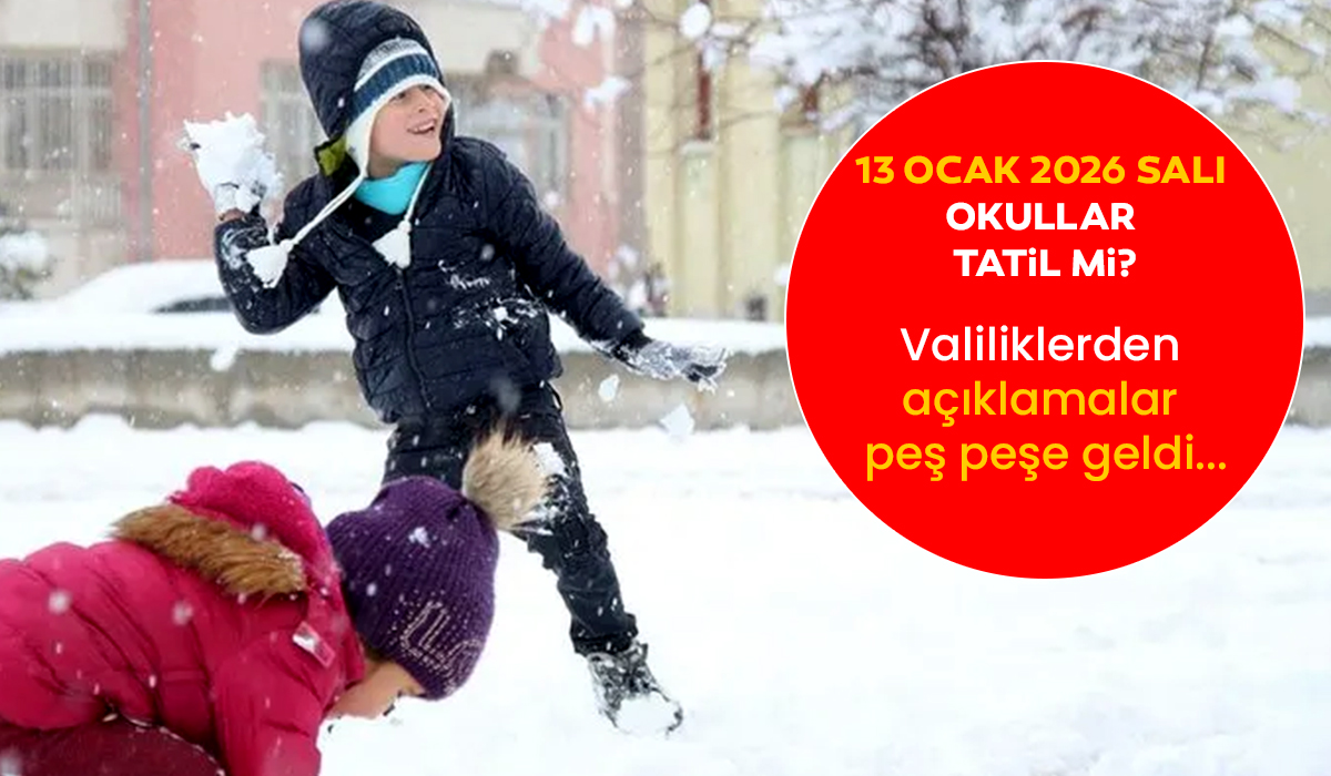 SON DAKİKA... Ülkenin büyük bir bölümünde soğuk hava ve kar yağışı etkisini göstermeye devam ediyor. Meteorolojiden uyarılar devam ederken geçtiğimiz gün İstanbul dahil olmak üzere çok sayıda ilde eğitime ara verilmişti. Veliler ise şimdi, 13 Ocak 2026 Salı günü okullar tatil mi? Sorusunun cevabını arıyor. Valilikler konuya ilişkin peş peşe açıklamalarda bulunurken, Salı günü okullar var mı yok mu? İstanbul'da bugün okullar tatil mi? BUGÜN OKULLAR TATİL Mİ? Soruları ise cevap bulmaya başladı. Peki hangi il ve ilçelerde okullar tatil? 13 Ocak'ta okullar tatil olacak mı? İşte okulların tatil edildiği il ve ilçeler…