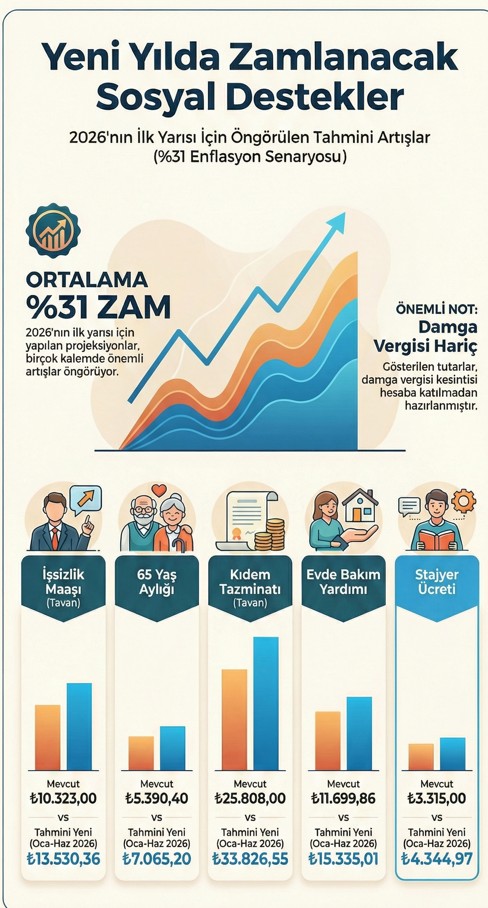Bu ödemeler, asgari ücret artışı dikkate alınarak güncellenir: