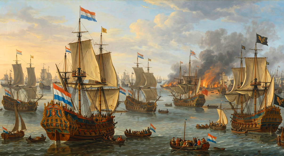 Denizciliğin "Altın Çağı"nda İngiliz ve İspanyol donanmalarına kök söktüren devasa ticari ve askeri güç. Amiral Michiel de Ruyter komutasında İngiltere'nin kalbine kadar giren bu filo, dönemin küresel ticaretini (Hollanda Doğu Hindistan Şirketi) tek başına kontrol ediyordu.