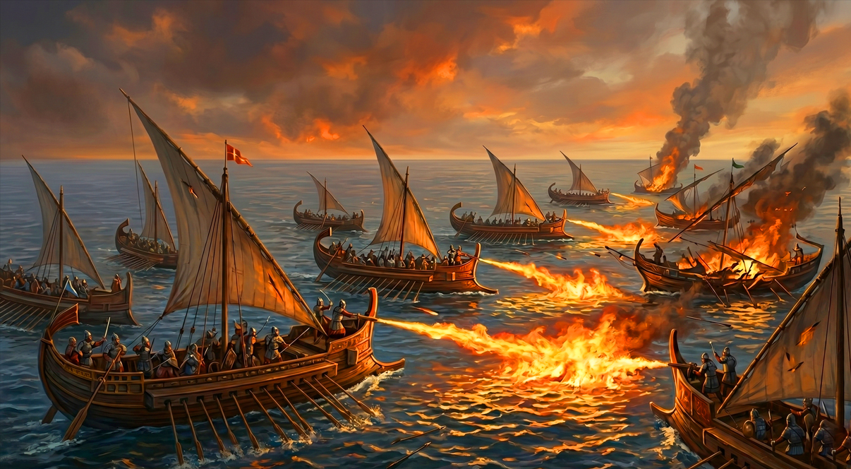 Yüzyıllar boyunca İstanbul'u (Konstantinopolis) Arap ve Rus kuşatmalarından koruyan efsanevi güç. Su üzerinde bile yanmaya devam eden gizli silahları "Grejuva" (Rum Ateşi) ve hızlı Dromon gemileriyle orta çağın en korkulan deniz gücüydü.