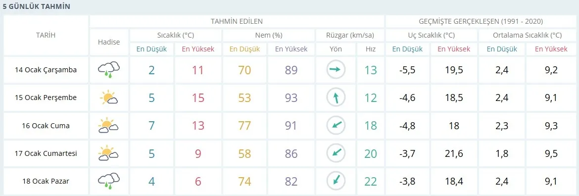 İşte, Meteoroloji verilerine göre şehirde genel görünüm: