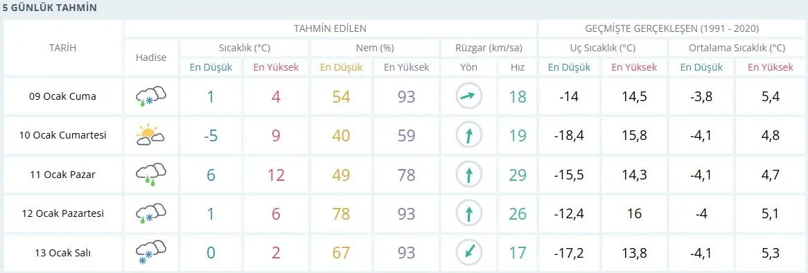 İşte, beklenen hava durumu: