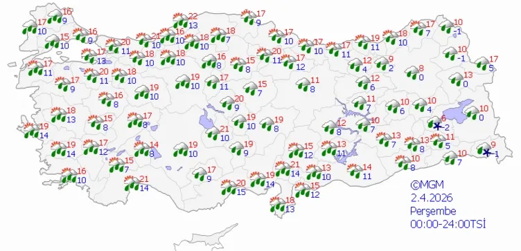 23 Nisan hava durumu açısından Marmara ve Ege bölgeleri görece daha şanslı görünüyor. Salı ve Çarşamba günleri etkili olan yağışlı sistem, Perşembe sabahı itibarıyla bu bölgeleri terk ediyor.