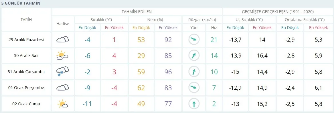 Parçalı ve çok bulutlu, bölge genelinin aralıklı karla karışık yağmur ve kar yağışlı geçeceği tahmin ediliyor. Bölge genelinde buzlanma ve don ile birlikte pus ve yer yer sis bekleniyor.