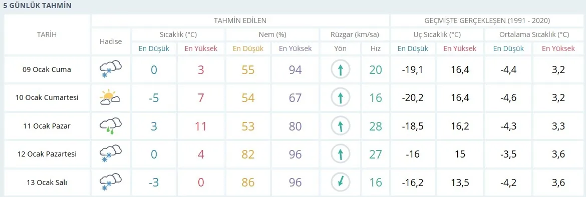 İşte, beklenen hava durumu: