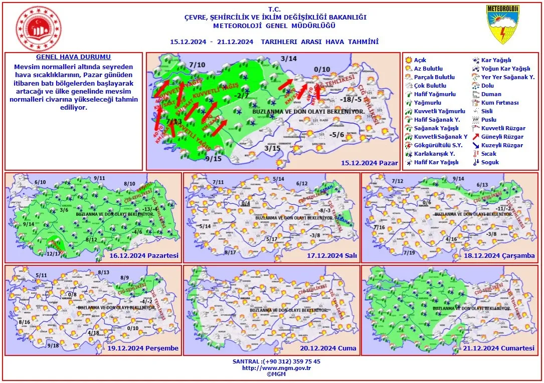 Doğu Karadeniz'in iç kesimleri ile Doğu Anadolu'nun doğusunun dik ve eğimli yamaçlarında çığ tehlikesi ile buzlanma, don ve ulaşımda meydana gelebilecek olumsuzluklara karşı dikkatli ve tedbirli olunmalıdır.