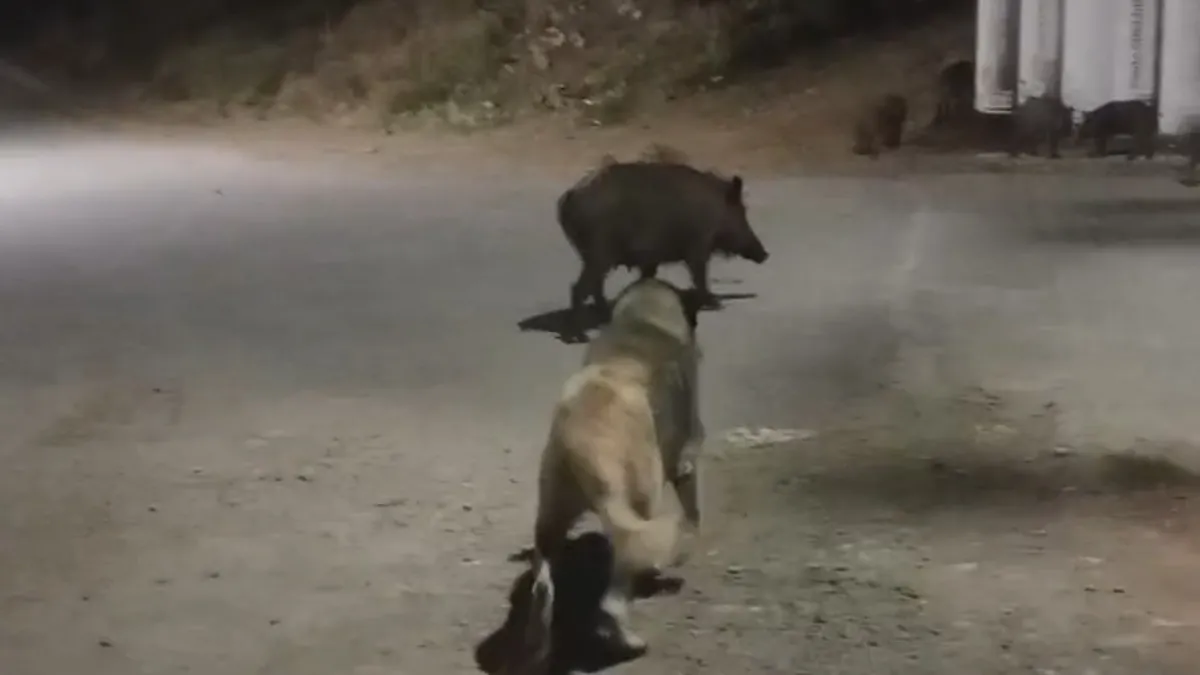 Yaban domuzları yavrularıyla birlikte Tunceli merkez Atatürk Mahallesi'ne kadar indi. Çöp konteynerlerinden karınlarını doyuran yaban domuzlarını rahatsız eden tek şey ise; sokak köpekleri. İri bir yaban domuzu köpekleri bölgeden uzaklaştırırken ötekiler karınlarını doyurmaya devam etti. O anlar, Hasan Bıra isimli bir vatandaş tarafından cep telefonu kamerasıyla kayıt altına alındı. Karınlarını doyuran yaban domuzları yeniden ormanlık alana giderek gözden kayboldu.