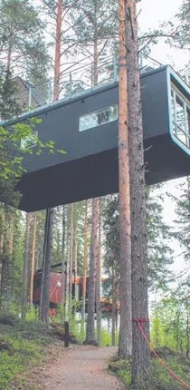 Treehotel, İsveç'teki Harads ormanlarının içinde bulunuyor ve ağaç ev konseptini bir adım daha öteye taşıyor. Otelde çevre dostu odaların yanı sıra uzay mekiği şeklinde dizayn edilmiş bir oda da bulunuyor. Otelin konumu sayesinde tüm odalar doğa manzaralı.