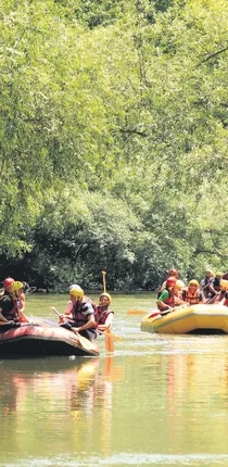 Söylenene göre şubat-mayıs ayları arasında su o kadar kuvvetli ki kürek çekmeye bile gerek kalmıyor. Oysa bizim çayın sakin noktalarında epeyce kürek çekmemiz gerekiyor. 13 kilometrelik parkur yaklaşık iki saatte tamamlanıyor.