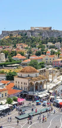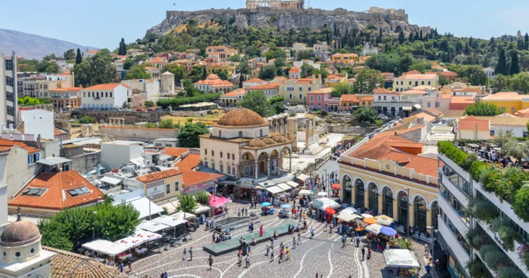 Şehrin önemli tarihi turistik meydanlarından olan Monastiraki Meydanı sıralı taverna ve restoranlarla ünlü. Meydanda geleneksel yunan tatlarını tadacağınız sağlı sollu olarak bir çok taverna bulunuyor. Burada yer alan bit pazarından da alışveriş yapmanızı tavsiye ederiz. Meydan aynı zamanda bizim açımızdan önemli yapıları da barındırıyor. Osmanlı döneminden kalma anıtlar, özellikle Türk misafirlerinin bir hayli ilgisini çekecek cinsten.