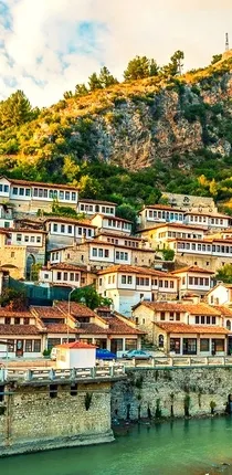 Ülkenin güneyinde yer alan Berat, gezilip görülmesi gereken tarihi bir şehirdir. Bu şehir, 2400 yıllık bir tarihi bulunmaktadır. Safranbolu'ya gitmişseniz burada pek yabancılık çekmezsiniz. Çünkü tarihi yapıları ve özellikle evleri birbirine çok benzerdir. Şehrin ortasında Osumi nehri geçmektedir. Nehrin bir kenarında Müslümanlar diğer tarafında Hristiyan mahallesi bulunmaktadır.
