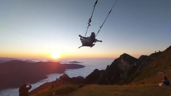 Yaylada özellikle sisin oluşturduğu bulutları izlerken salıncakta fotoğraf çektirmek isteyen ziyaretçiler, sıranın kendilerine gelmesini bekliyorlar.