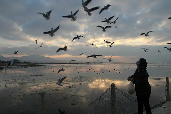 Beyşehirli vatandaşlar, gezinti yatlarının olduğu sahili mesken tutan pelikanı dinlendiği taşın üzerinde ve tatlı sulara gagasını sokarak balık avladığı zamanlarda uzun süre izleyip fotoğrafını çekerken, su yüzeyinde kanat çırpan ilçenin sembolü olan martıları da ekmek parçalarıyla elleriyle besliyor. Martılarla birlikte su yüzeyinde yiyecek arayışında olan sakar mekeler de nasiplerinden payını alabilmek için çabalıyor. İnsanların bölerek verdiği ekmek parçalarını kapabilmek için kıyıda birbirleriyle adeta yarışan martılar, sahildeki parklar ve köprü üzerlerine de çıkarak beslenmeye çalışıyor.