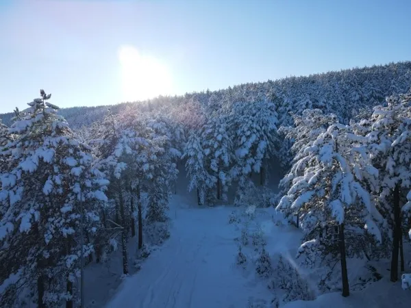 Kent merkezine 22 kilometre mesafede çam ormanlarından oluşan doğa harikası Çatak Tabiat Parkı'nın yeşil alanlarının karla kaplı hali kartpostallık görüntüler oluşturdu.