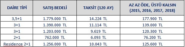 Kampanya kapsamında örneğin 3+1 bir daireyi müşteriler herhangi bir peşinat ödemeden 9.619 TL taksitle 1. Taksitini ödeyip hemen teslim alacak ve oturmaya başlayacak. Kalan ödemeleri ise yılda 1 kez vade farksız olarak 4 yıl boyunca 120.300 TL'lik ödemelerle tamamlayacak. Exen İstanbul'da 2+1 dairelerde ise 6.093 TL ilk taksiti ödeyip evini teslim alacak yine kalan ödemeleri yılda 1 kez vade farkı ödemeden 4 yıl boyunca 76.200 TL 'lik ödemelerle tamamlayacak.