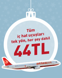 Atlasjet, 14 Aralık 2014'e kadar alacağınız 1 Ocak - 31 Mart 2015 arasındaki tüm yurt içi uçuşlarının biletlerini 44 TL'den başlayan fiyatlarla satışa sunuyor. Web veya mobil üzerinden online olarak