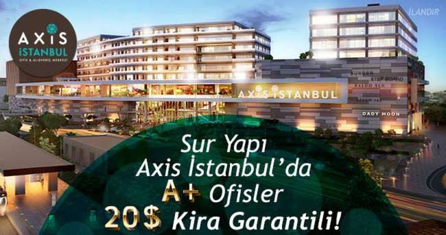 Sur Yapı, Eyüp'te yapımına başladığı Axis İstanbul Ofis ve Alışveriş Merkezi projesinde kira gelirini garanti ediyor. Sur Yapı, ofisini yenilemek isteyenlere, yatırımcılara cazip kampanyası ile kolay ödeme seçenekleri sunuyor. İstanbul'un ticari yaşamının merkezinde bulunan Axis İstanbul'dan A Plus ofis sahibi olacaklara kampanya kapsamında yüzde 10 indirim fırsatı sunuluyor. Ayrıca 1 yıl boyunca A plus ofislerin yatırımcılarına m² başına 20 USD kira garantisi verilecek.