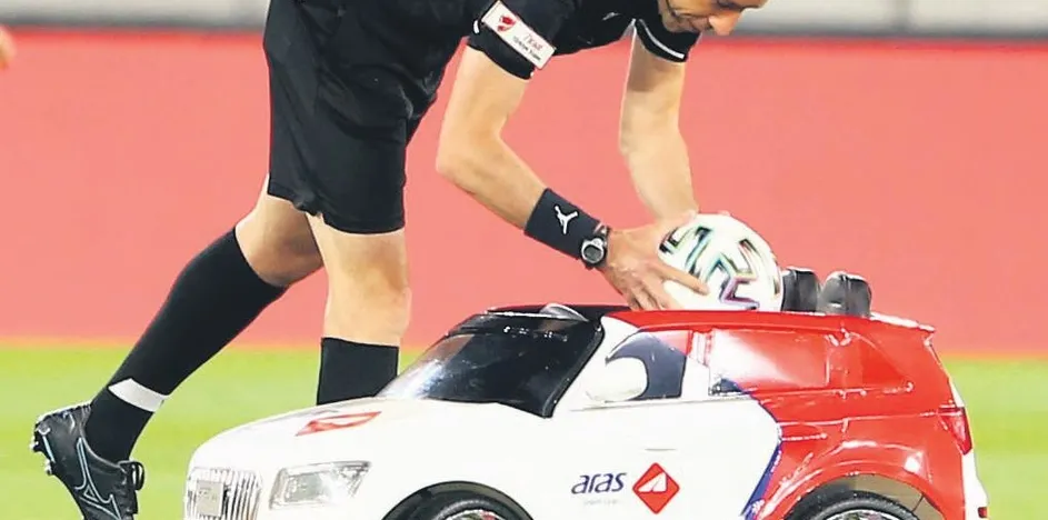 ZIRAAT Türkiye Kupası'nda Türkiye'de ilk kez uygulanan bir projeye imza atan Aras Kargo, dün yine işbaşındaydı. Saha içi için özel olarak tasarlanan mini bir araç, başlama vuruşu için topu maçın hakemi Ali Palabıyık'a teslim etti.